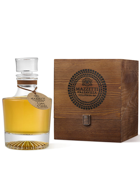 Des nuances vives et des reflets dorés sont les éléments distinctifs d'une grappa longuement vieillie dans des fûts précieux de petit calibre. Ses caractéristiques visuelles sont certainement mises en valeur par les rainures de l'élégant cristal spécialement conçu pour conserver un distillat aux qualités sensorielles exceptionnelles, à découvrir lors d'une dégustation attentive dans un salon.